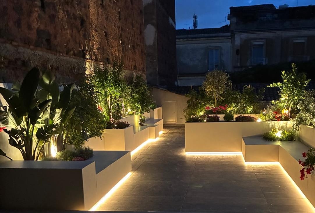 Crea atmosfere suggestive, illuminando gli spazi esterni con eleganza. I LED, strategicamente posizionati, esaltano le forme e i materiali, trasformando ogni ambiente in uno spazio raffinato e accogliente, sia di giorno che di notte.
